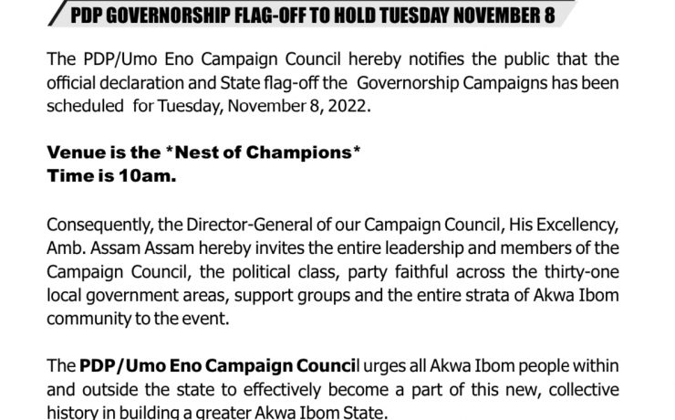 Akwa Ibom PDP to flag-off guber campaigns tomorrow